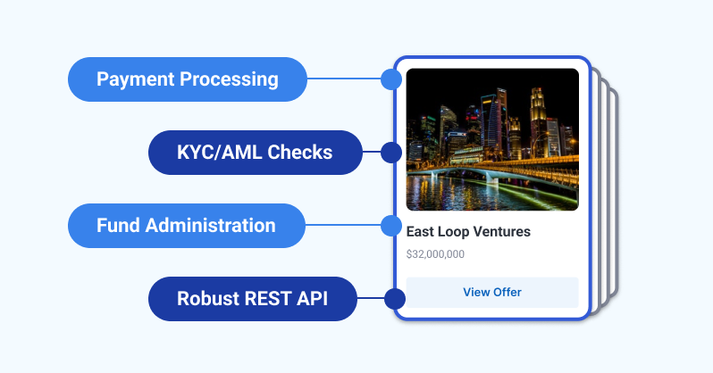 Robust API capabilities which enable you to streamline processes, automate tasks, and enhance your team's efficiency. Integrate with our in-house Fund Admin, Payment Processor, and more!