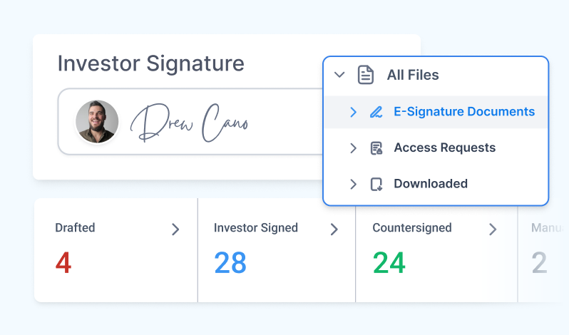 We understand how important subscription document is to your business, this is why we have streamlined our E-Signature capabilities to easily create and manage subscription documents, while ensuring that your investors have a simplified approach when it comes time to sign.